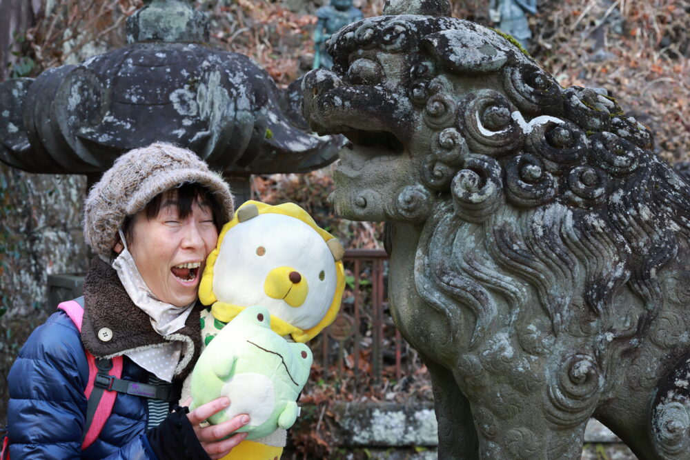 奥之院の彫刻が✨見事✨でした。🦁ポンデ君は、彫刻と天狗様に大興奮👺😝🤩!!