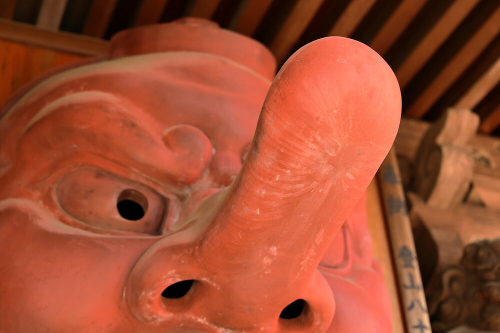 御本堂には、大きな天狗の面👺があります。🦁ポンデ君は、嬉しくて大興奮してました‼😝🦁🤩🎶