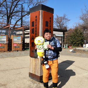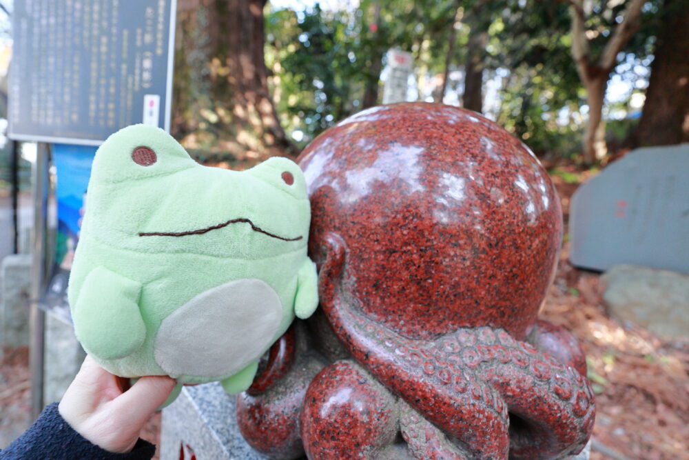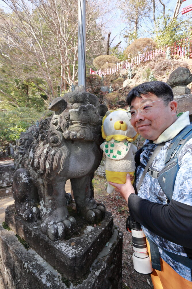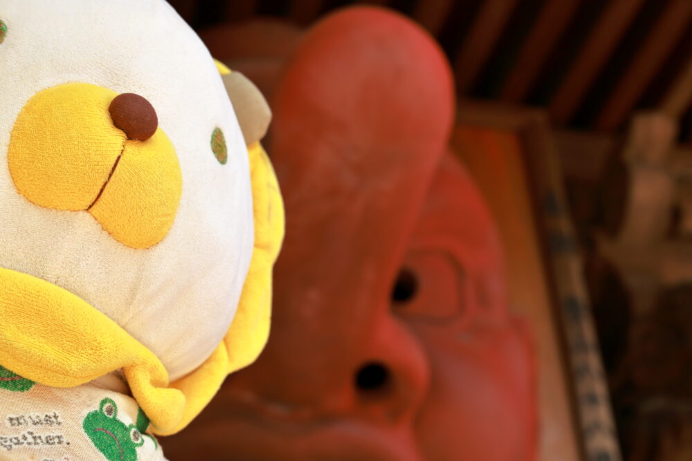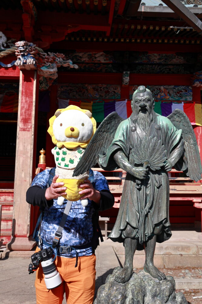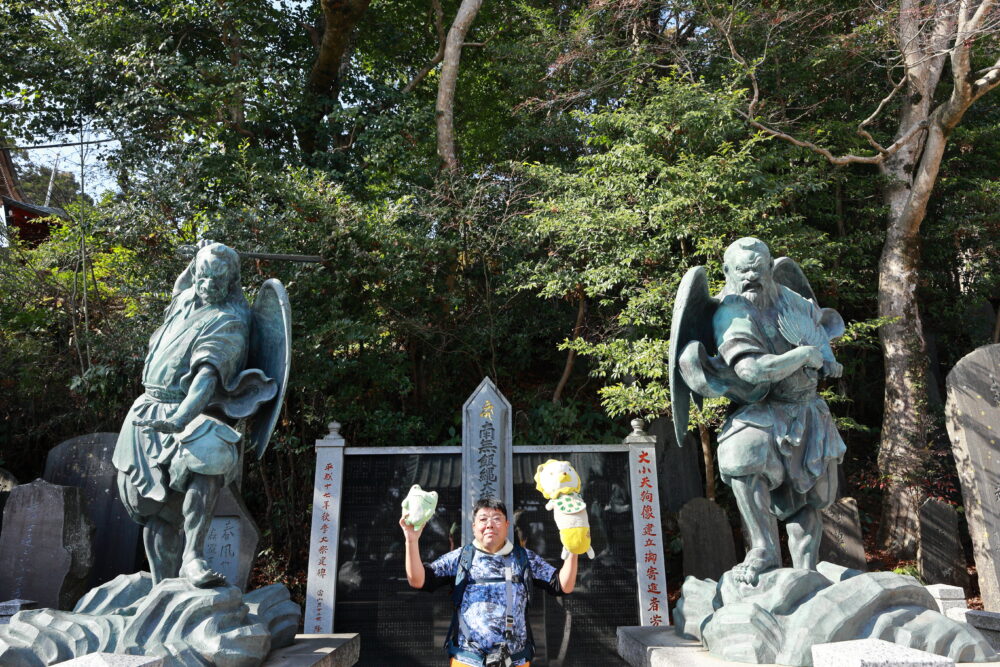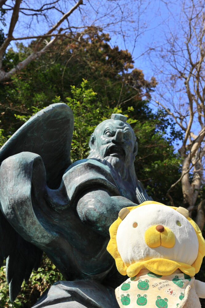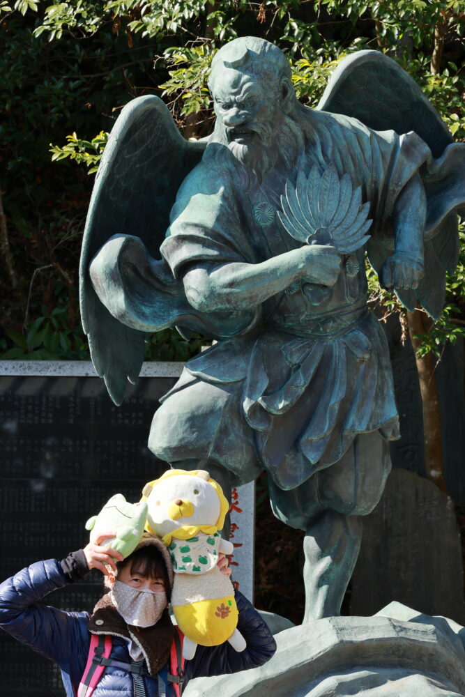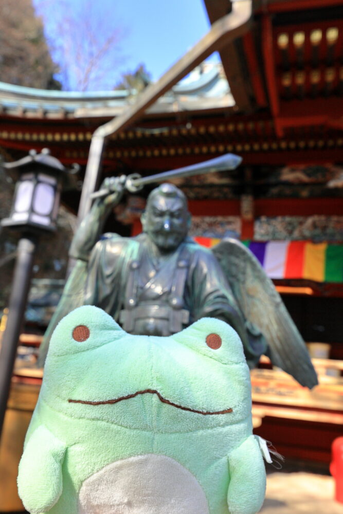 🐸カエル君も👺天狗様をバックに記念撮影✨📸✨☟